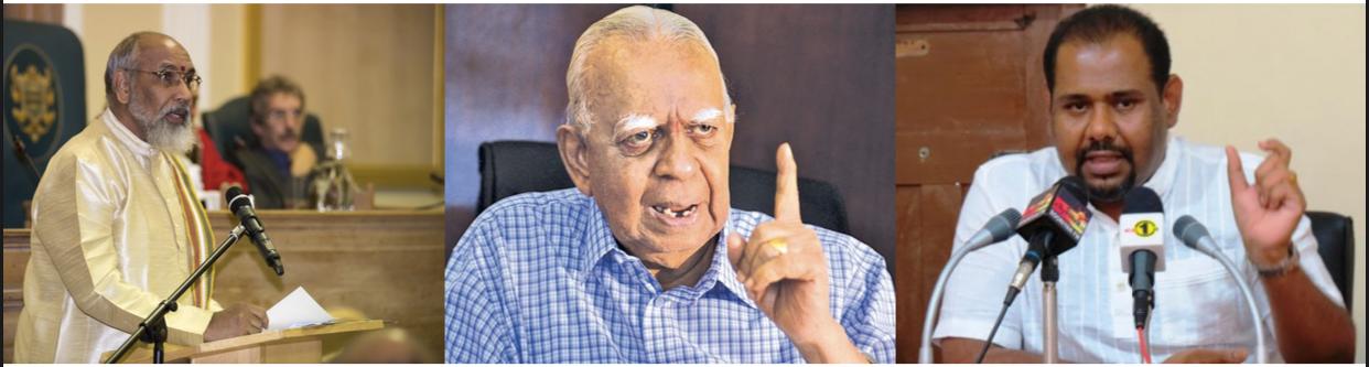 தமிழ்ச் சூழலை திரும்பிப் பார்த்தால் நமக்கு தெரியும் காட்சிகளோ வேறு. அண்மையில் தமிழ் தேசிய மக்கள் முன்னணியின் தலைவர், கஜேந்திரகுமார் பொன்னம்பலமும் ஈழ மக்கள் புரட்சிகர விடுதலை முன்னணியின் தலைவர் சுரேஸ் பிரேமச்சந்திரனும் பொது வெளியில் தனிப்பட்ட ரீதியில் மோதிக்கொண்டமையானது தமிழ் அரசியல் எந்தளவிற்கு தரம்தாழ்ந்து செல்கின்றது என்பதற்கு சிறந்த எடுத்துக்காட்டு. ஜ.நாவிற்கான ஒரு ஆவணத்தில் கையெழுத்திட்டுவிடடு, கையெழுத்திட்டிருக்கும் கட்சிகள் தொடர்பில் பொது வெளியில் மோதிக் கொள்வதானது, குறித்த ஆவணத்திலும் இவர்கள் எவருமே உண்மையாக இருக்கவில்லையென்பதையே காண்பிக்கின்றது. ஏனெனில் குறித்த ஆவணத்தில் கூட்டமைப்பு, முன்னணி மற்றும் விக்கினேஸ்வரன் தலைமையிலான தமிழ் மக்கள் தேசியக் கூட்டணி ஆகியவற்றின் தலைவர்கள் கையெழுத்திட்டிருக்கின்றனர். விக்கினேஸ்வரன் கடந்த நாடாளுமன்றத் தேர்தலில் சுரேஸ் பிரேமச்சந்திரனின் கட்சியில்தான் போட்டியிட்டிருந்தார். தற்போது அதன் பெயர் மாற்றப்பட்டிருந்தாலும் அடிப்படையில் அது ஈ.பி.ஆர்.எல்.எப் தான்.