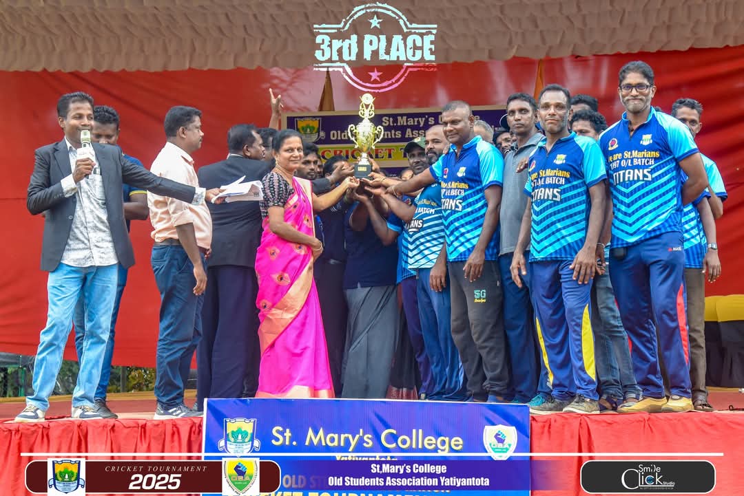 எட்டியாந்தோட்டை புனித மரியாள் தமிழ் மகா வித்தியாலத்தின் பழைய மாணவர்களுக்கு இடையே நடைபெற்ற 2025ஆம் ஆண்டின் கிரிக்கெட் போட்டியில் 2020ஆம் ஆண்டு சாதாரண தர வகுப்பு அணி சம்பியன் கிண்ணத்தை வென்றது.